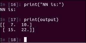 print(output)如果现在运行此单元格,则应该在屏幕上看到NN输出的正确张量数组: