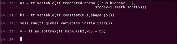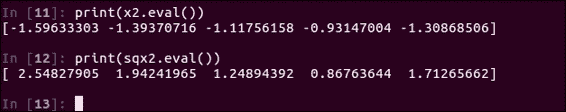 sess = tf.InteractiveSession()然后,您可以轻松计算任何节点的值。 例如,输入以下代码并运行单元格将输出M2的值: