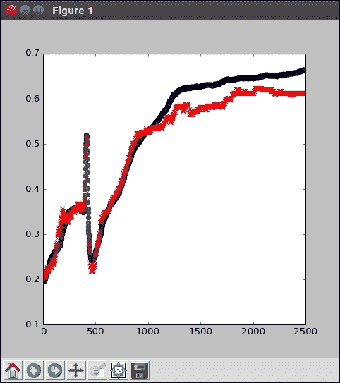 h2_drop = tf.nn.dropout(h2, keep_prob)仅训练了 5000 个周期后,我们就清除了 68% 的准确率。 我们确实必须对卷积进行编码,但这并不是那么困难。 通过对问题的结构应用一些知识,我们同时减小了模型大小,但提高了准确率。 干得好!