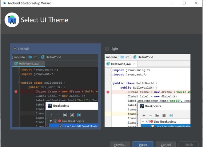 路径选择完成后,进入UI主题选择界面,根据自身喜好进行黑色背景或白色背景的选择,博主比较喜欢黑色背景,点击next。