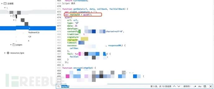 在JS文件中搜索replayId,发现replayId变量是调用guid函数赋值的。