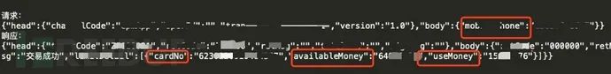 继续深度挖掘,发现通过修改请求数据包中的mobilephone参数,还可以越权查看他人银行Ka额度信息,包括卡ID、可用额度、已使用额度等。