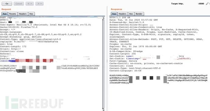 遇到全程加密数据包,我们首先分析前端JS文件,发现使用AES加密ECB模式PKCS7Padding填充,密钥key硬编码在js代码中,编写脚本破解加密算法。又发现利用请求头中的replayId值,防止攻击者重放请求数据包。通过全局搜索发现replayId变量是调用guid函数赋值的,继续编写Python脚本完成自动化的暴力破解,成功登陆,深入漏洞挖掘。