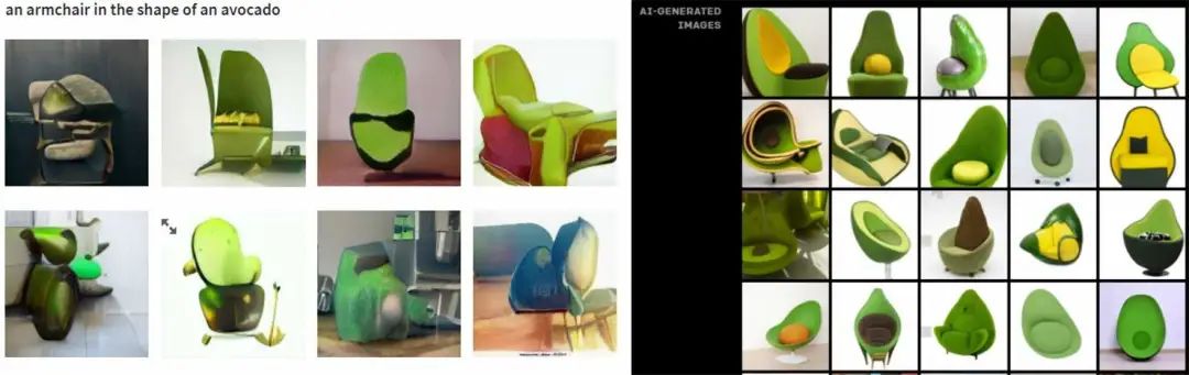 文本提示:鳄梨形状的扶手椅。