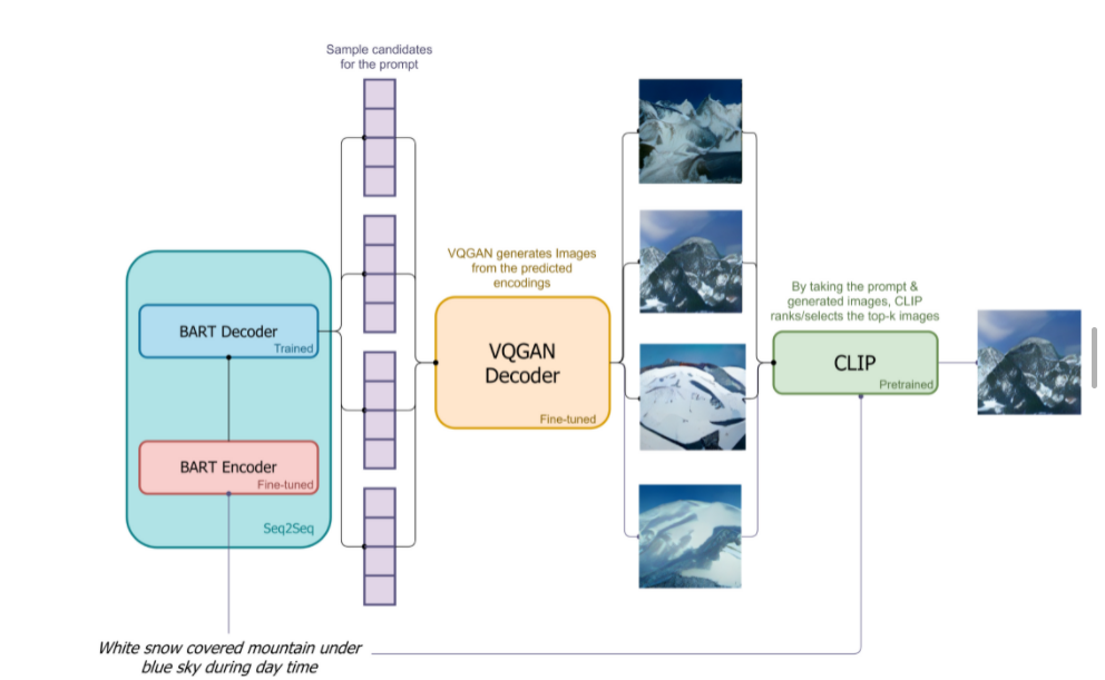 2.Dall·E mini使用大量预先训练好的模型(VQGAN、BART编码器和CLIP),而OpenAI从头开始训练。