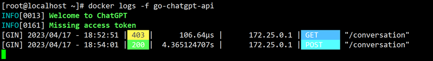 现在我们可以找一个项目,使用access token模式,并使用我们自建的代理地址进行访问;自建IP的访问地址为http://:8080/conversation;如果项目与反代服务同在一台VPS上,则反代地址直接http://127.0.0.1:8080/conversation