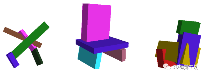 如何用简单的基于部分的表示来抽象表达出复杂3D场景中的几何基元布局一直是计算机视觉领域的目标之一。人类可以通过简单形状基元(如立方体或几何图形)的渲染来理解复杂的场景。例如,一所房子是由砖块和方木制成的,一本书是由长方形组合而成的立方体。同时,人类还可以通过将环境分解为立方体、圆柱体、椭圆体和其他简单的体积基元的排列组合,实现在视觉上抽象的表征现实世界的环境。这种3D世界的抽象表达对于具有视觉感知的机器人也非常有用。自计算机视觉问世以来,基于几何形状基元的场景表示一直都是一个值得研究的话题。人类总是希望感知现实世界并将其构建为简单几何参数模型的组合,如图1所示。尤其是在一些人造环境,我们总是可以看到由几何元素基元组成的实体,例如立方体或圆柱体。因此正确推断出这些几何基元是获得高级抽象场景描述的重要步骤。