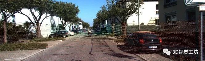 图2 稀疏激光雷达点云投影到相机图像中