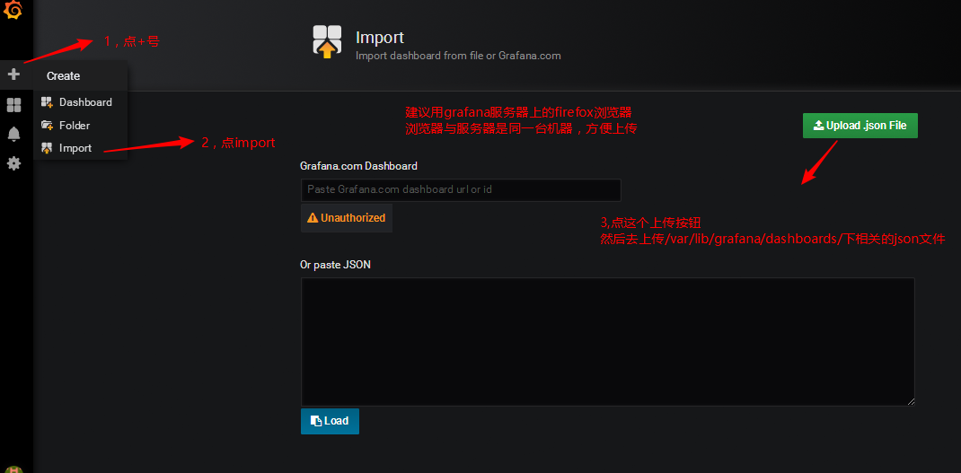 点 import 导入后,报 prometheus 数据源找不到,因为这些 json 文件里默认要找的就是叫 Prometheus 的数据源,但我们前面建立的数据源却是叫 prometheus_data(坑啊)。