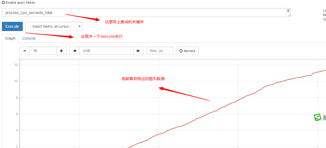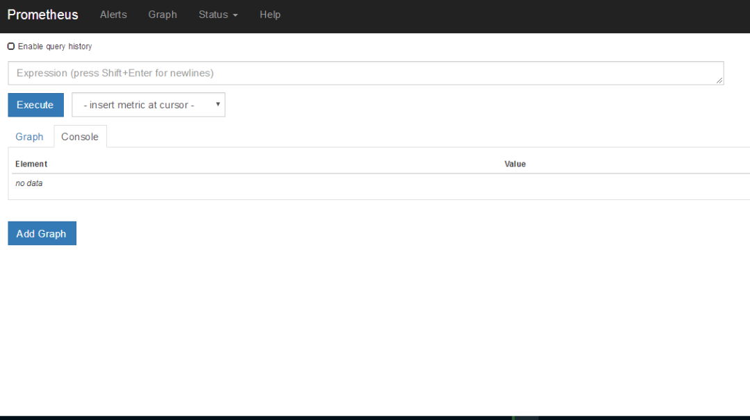 通过浏览器访问 http:// 服务器 IP:9090 就可以访问到 Prometheus 的主界面: