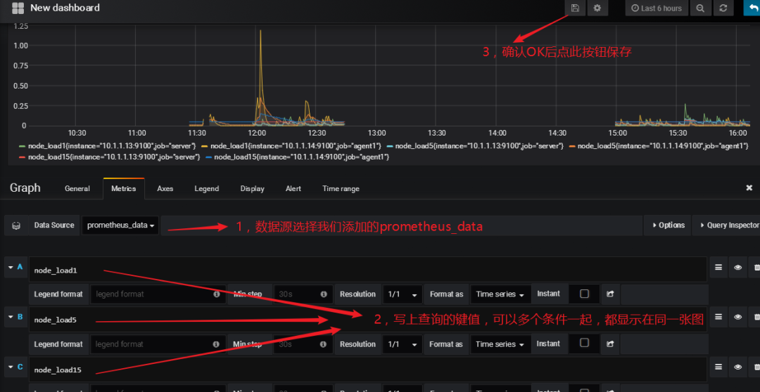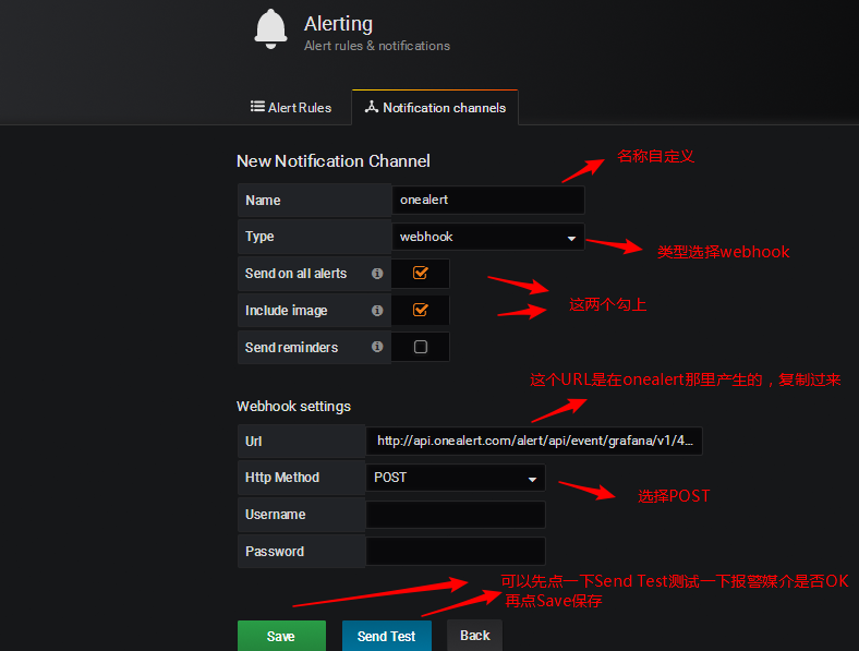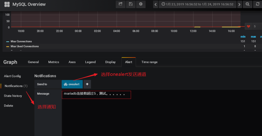 Prometheus 报警需要使用 alertmanager 这个组件,而且报警规则需要手动编写(对运维来说不友好)。所以我这里选用 grafana+onealert 报警。注意:实现报警前把所有机器时间同步再检查一遍。