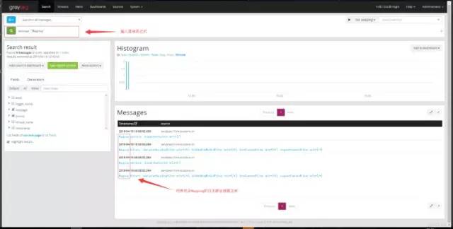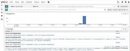 配置完成后启动项目,启动完成后正常情况下可以在Graylog的Search界面中查看日志信息: