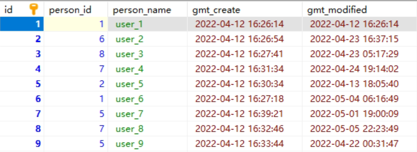 insert into person(id, person_id, person_name, gmt_create, gmt_modified) select @i:=@i+1, left(rand()*10,10) as person_id, concat('user_',@i%2048), date_add(gmt_create,interval + @i*cast(rand()*100 as signed) SECOND), date_add(date_add(gmt_modified,interval +@i*cast(rand()*100 as signed) SECOND), interval + cast(rand()*1000000 as signed) SECOND) from person;