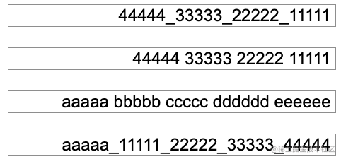 而形如 11111_22222_33333_44444 这种用下划线连接的文本,处理的方式也会与 11111 22222 33333 44444 一样,实现了从左往右的排列,改变了原有的顺序。