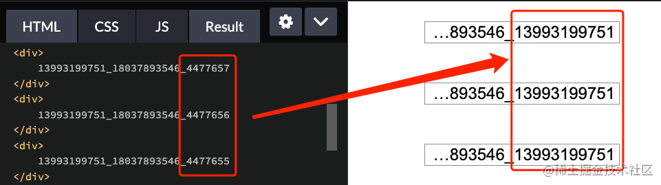 但是,这种展示有个缺点,3 个 ID 看上去就完全一致了,因此,PM 希望能够实现头部省略打点,尾部完全展示,那么,最终希望的效果就会是这样的: