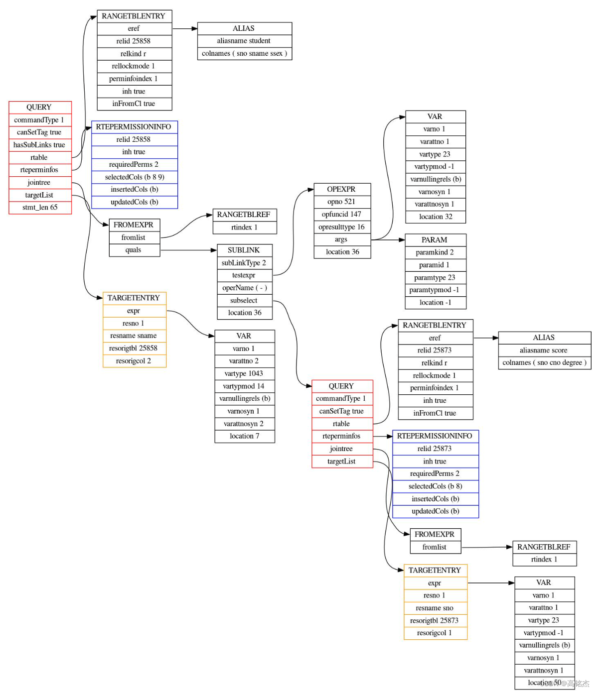 从日志中查看查询树,可以看到from的第二个子表是sublink。