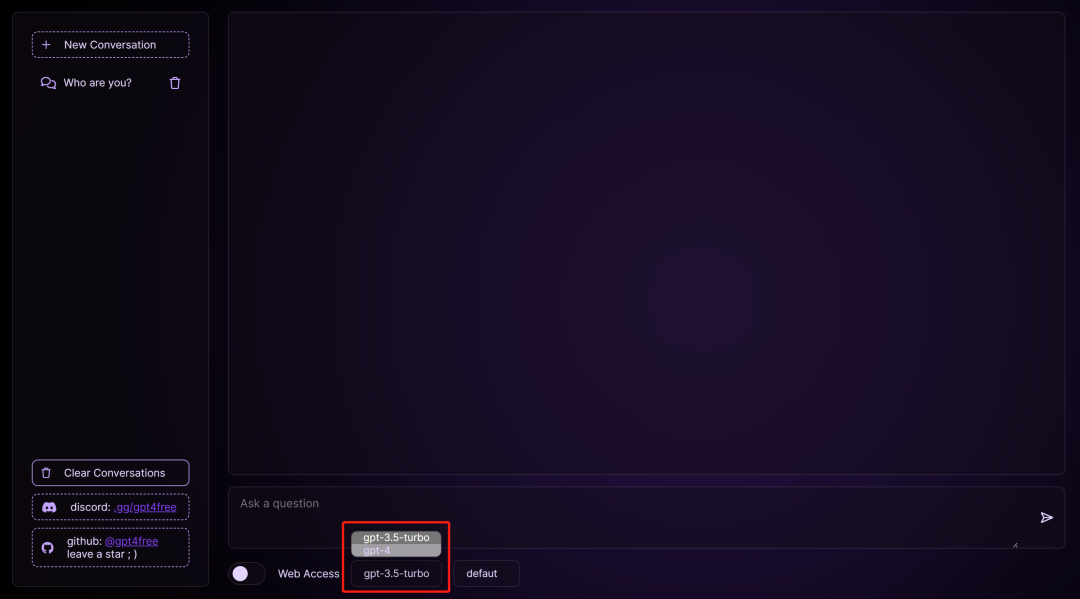 不仅如此,基于这些逆向工程的 API,xtekky 还创建了一个网站可直接体验,并可切换 GPT4/3.5:https://chat.chatbot.sex/chat/。