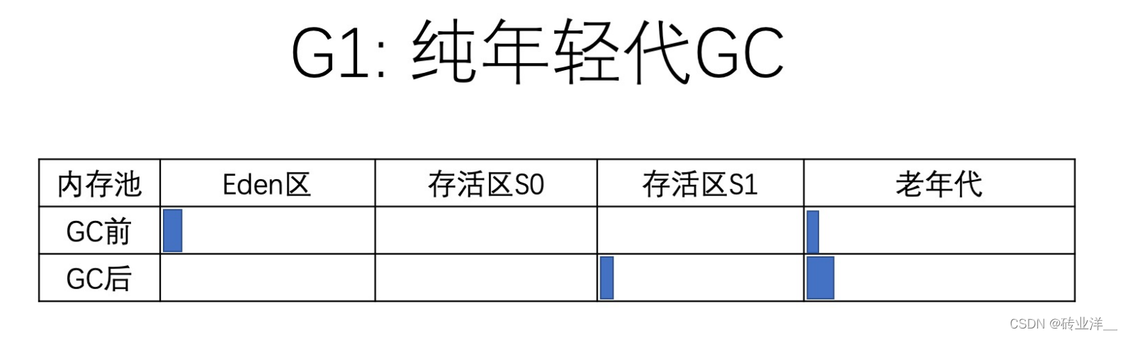 GC事件混合着处理年轻代和老年代的region。这也是G1等增量垃圾收集器的特色。而ZGC等最新的垃圾收集器则不使用分代算法。 当然,以后可能还是会实现分代的,毕竟分代之后性能还会有提升。