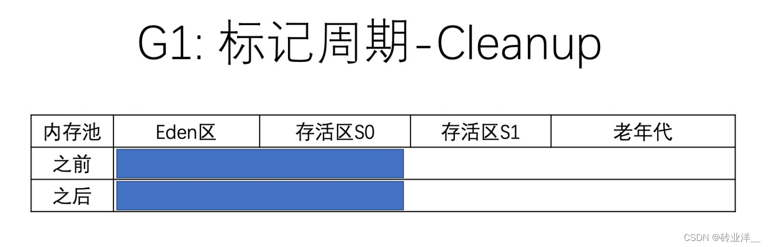 2022-01-10T10:42:59.664+0800: 1.173: [GC concurrent-mark-end, 0.0019498 secs] 和CMS类似,这是一次STW停顿(因为不是并发的阶段),以完成标记过程。 G1收集器会短暂地停止应用线程,停止并发更新信息的写入,处理其中的少量信息,并标记所有在并发标 记开始时未被标记的存活对象。 这一阶段也执行某些额外的清理,如引用处理或者类卸载(class unloading)。