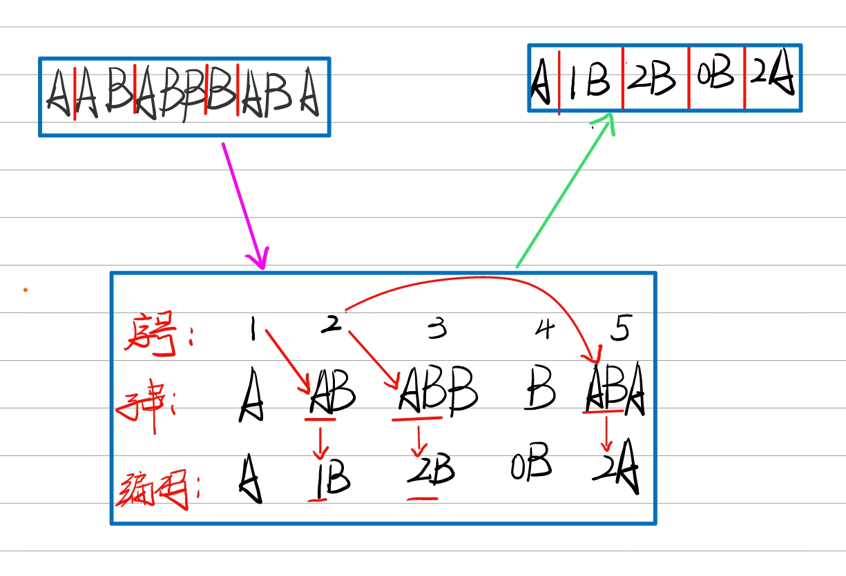 举个例子:假设我们有字符串 AABABBBABA ,我们使用 LZ78算法对其进行压缩