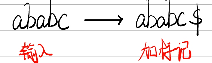 ① 这里我们输入字符串ababc,并给其加上标记得到ababc这个标记要比所有字符都要小。