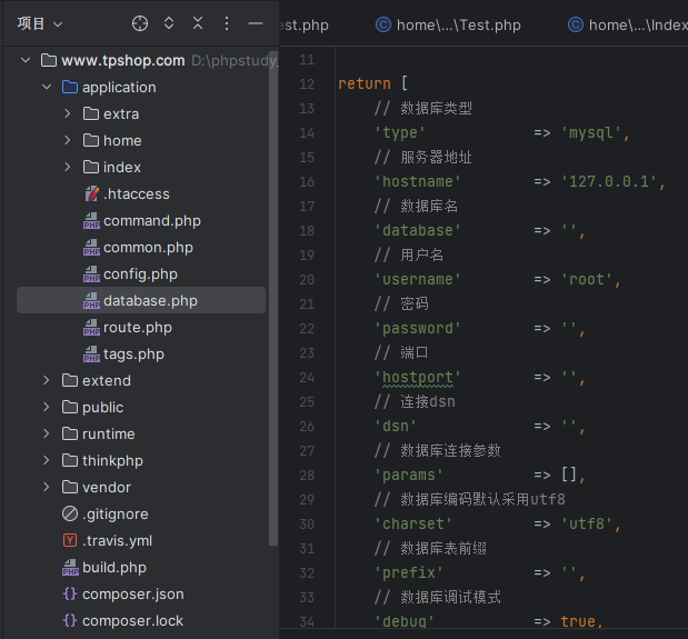 文件来进行配置的。该文件位于 application/database.php