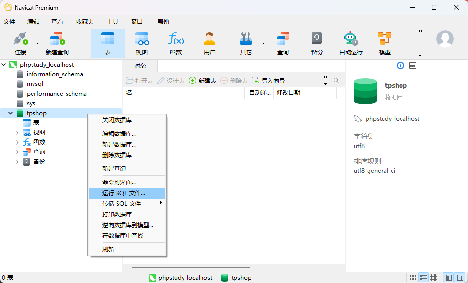 导入数据库之前首先需要创建一个同名数据库。