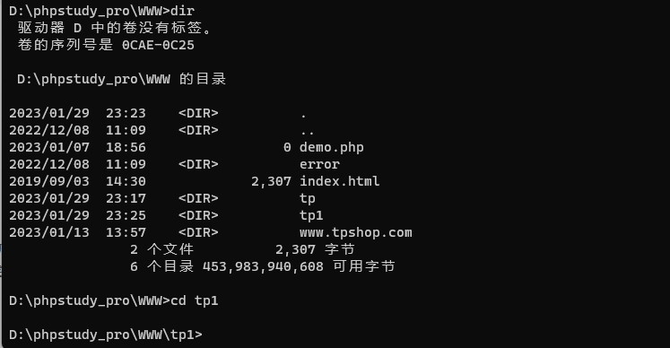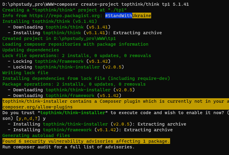 以安装 ThinkPHP 项目框架为例,安装命令如下:
