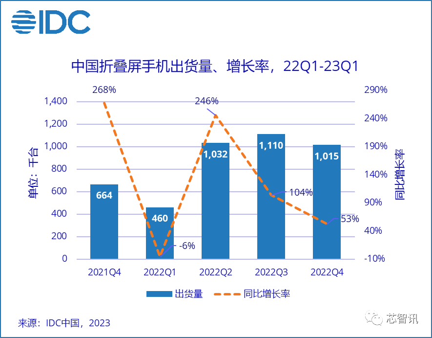 另外,在折叠屏市场,IDC指出中国折叠屏产品出货量保持稳定,出货量达到102万台,同比增长52.8%。其中竖折产品份额继续上升至44.3%。