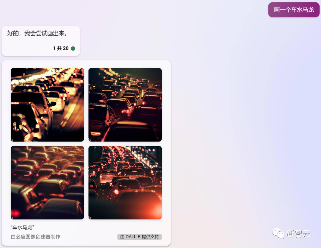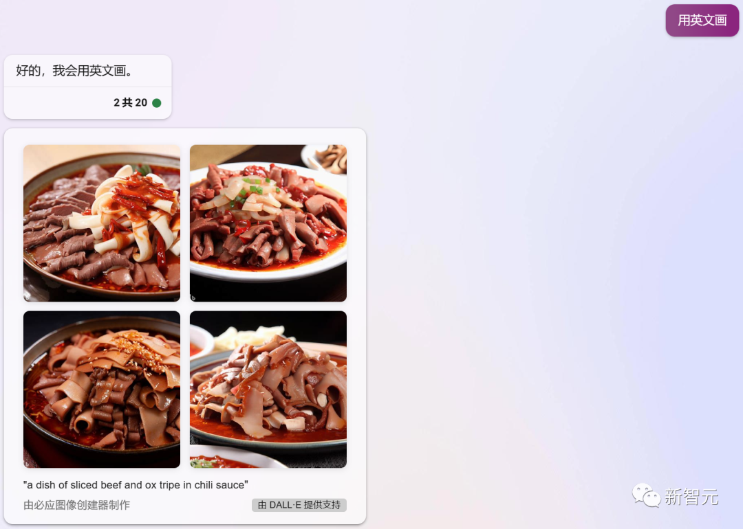 虽然暂时还不知道这背后的机制是什么,但小编在经过大量尝试之后发现,只要输入「画一个总线」这个命令,Bing在生成完「a bus」之后,自动切换到正确的「中译英」模式。
