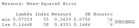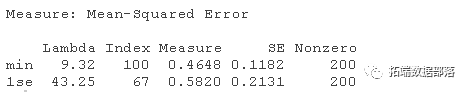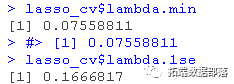 lambda.min: 给出交叉验证最佳结果的γ值。lambda.1se:γ的最大值,使MSE在交叉验证的最佳结果的1个标准误差之内。