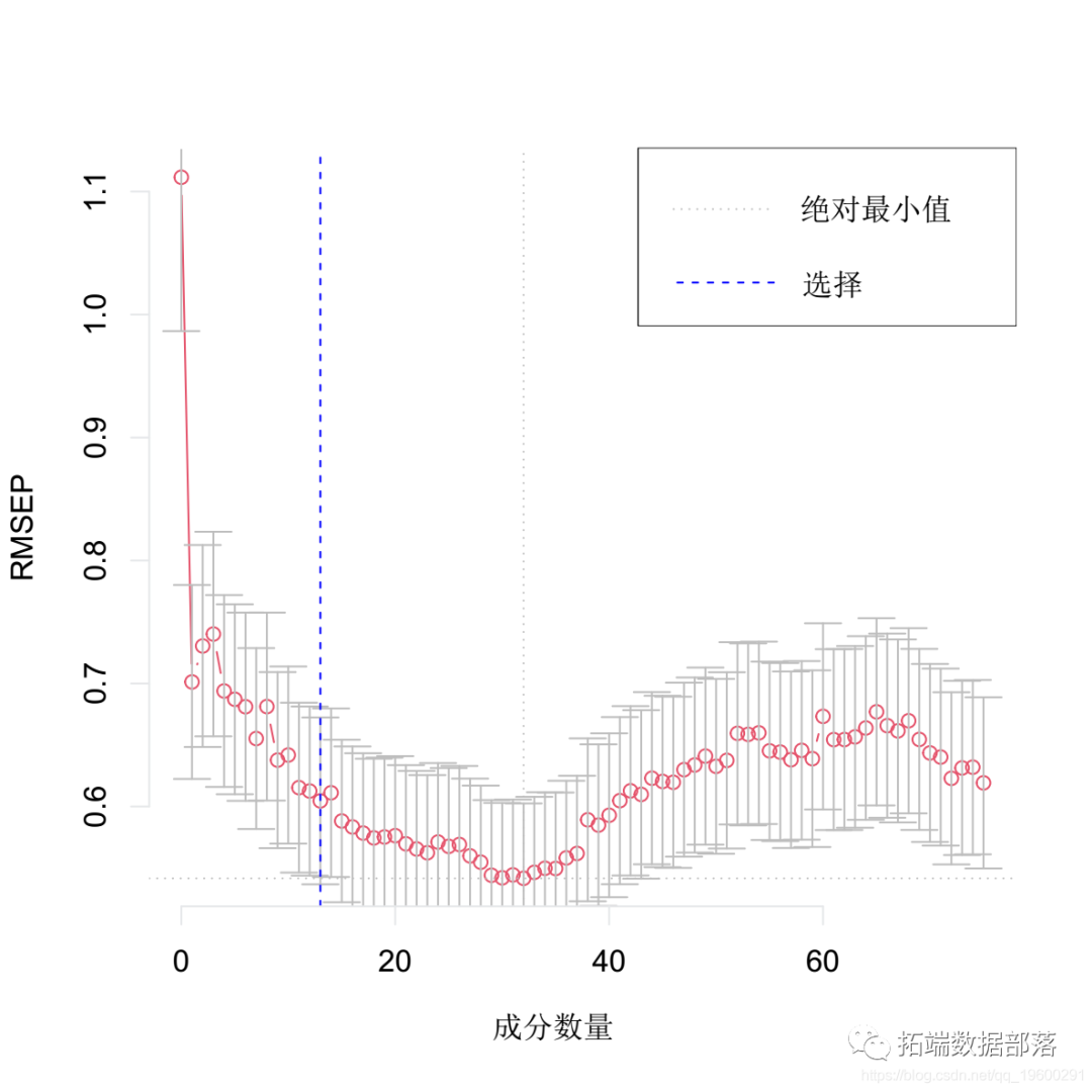 在后面的阶段,我们将研究如何选择预测误差最小的成分数。