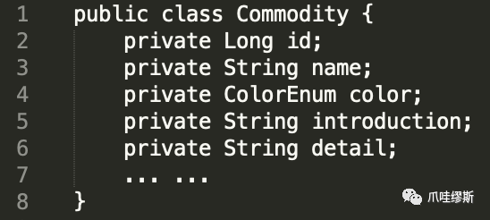 细心的同学们可能发现了,这里记录颜色使用的是ColorEnum,为什么要使用枚举类型呢?用String不也一样嘛?是的。在技术实现上是这样的。但是,对于颜色,属于常量属性,那么我们通过状态模式(State Pattern)维护一套颜色常量,在这种设计中,会由ColorEnum定义的状态对象将对值对象Commodity起到保护作用。