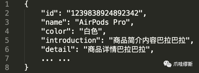 既然上面我们确定了库存上下文是核心域,那么我们库存上下文和以商品上下文为例,库存需要获取商品信息,那么对于上游商品上下文来说,需要提供商品相关接口。在系统集成中,可以选择RPC、REST、异步消息、领域事件等等,这个可以根据实际情况来选择。在本例中,商品上下文团队选择了基于REST的方式,而在PL上面,选择了JSON的方式对外提供数据格式。那么库存团队除了要对接商品上下文相关接口之外,还需要对获得的数据进行“转译”操作。比如,库存上下文需要获取一个商品的详细信息,那么商品上下文所返回JSON格式如下所示:
