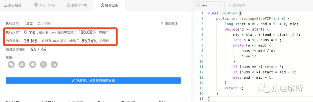 但是大家有没有发现一个规律,就是这个题的答案其实不是0就是5,所以,我们其实只需要判断k的一次出现的位置是否存在即可,如果存在,那么我们直接return 5;如果不存在,则直接return 0即可。具体代码实现,请参照如下。