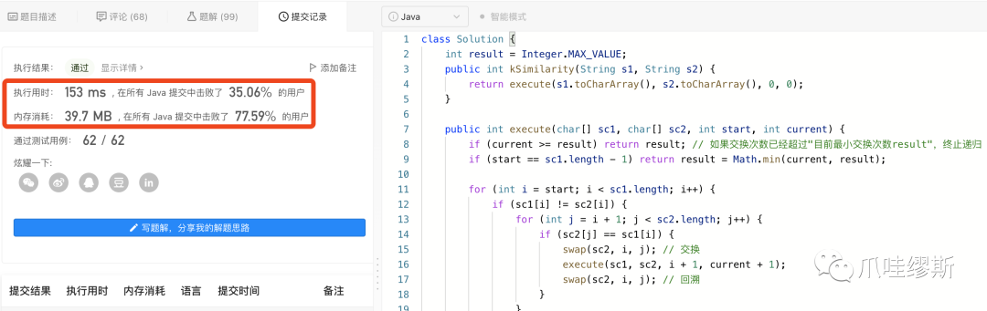 路线很多,但是我们也没有必要全都执行完每条路线的遍历操作。比如,当我们遍历一条路线进行交换操作的时候,发现已经超过了其他路线的最小交换次数,那么这条路线我们就没有必要在继续走下去了。具体的逻辑处理,请参照如下的代码实现。