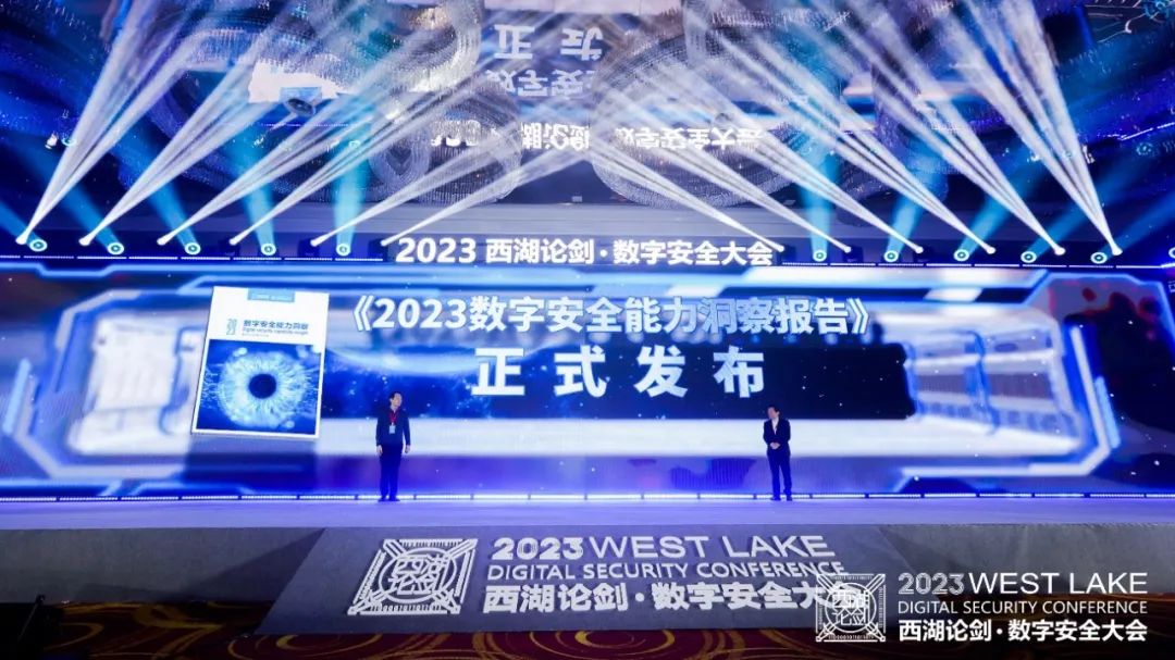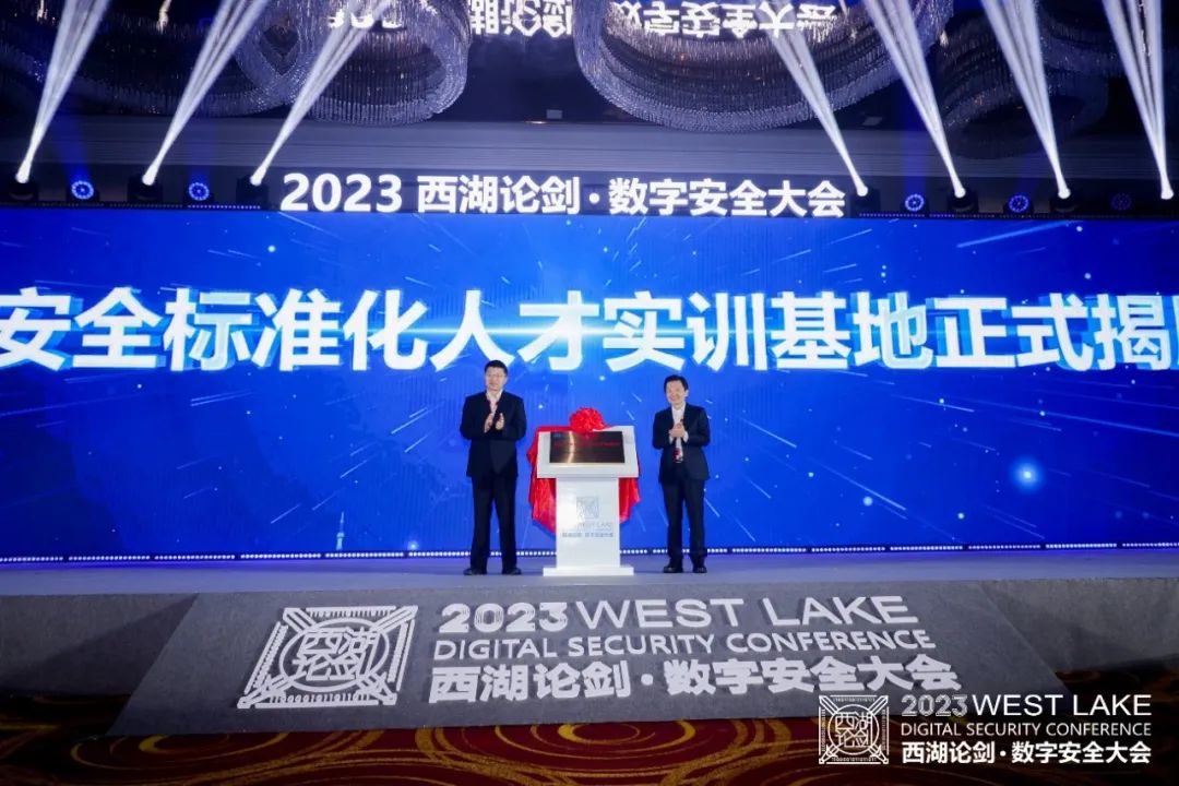 作为西湖论剑·数字安全大会新十年规划的首批落地成果,中国电子技术标准化研究院党委书记、副院长杨建军和安恒信息董事长范渊共同为国内首个网络安全标准化人才实训基地揭牌。随后,中国电子信息产业发展研究院总工程师高炽扬和安恒信息董事长范渊共同发布了《2023数字安全能力洞察报告》。