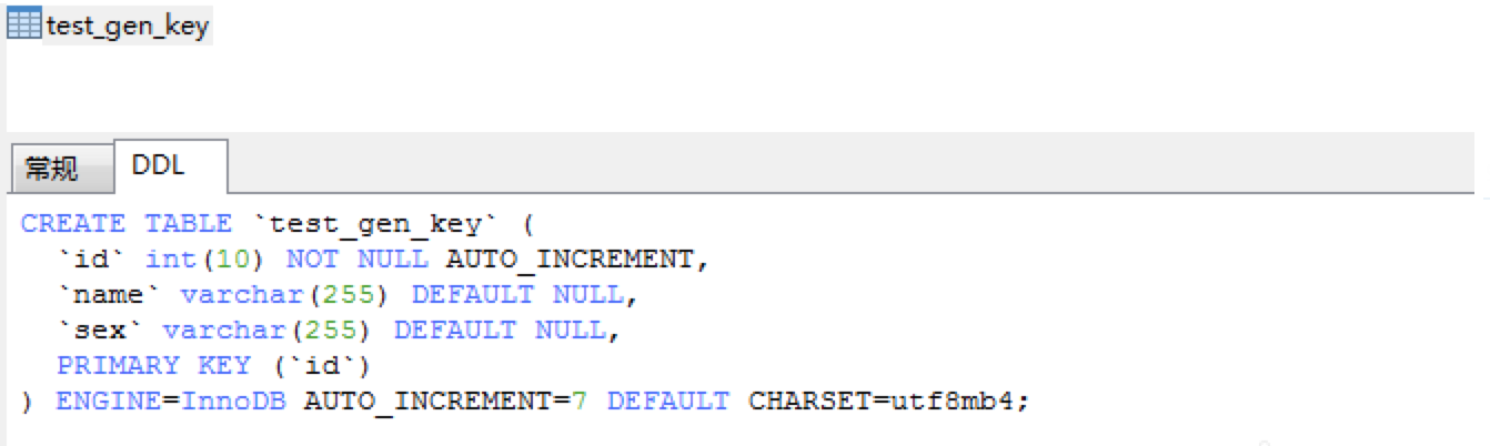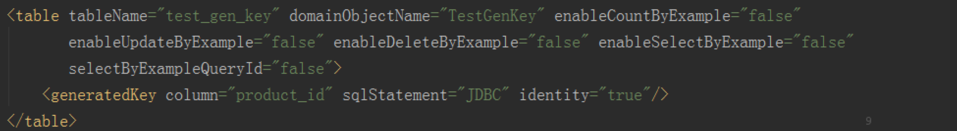 <table tableName="test_gen_key" domainObjectName="TestGenKey" enableCountByExample="false"