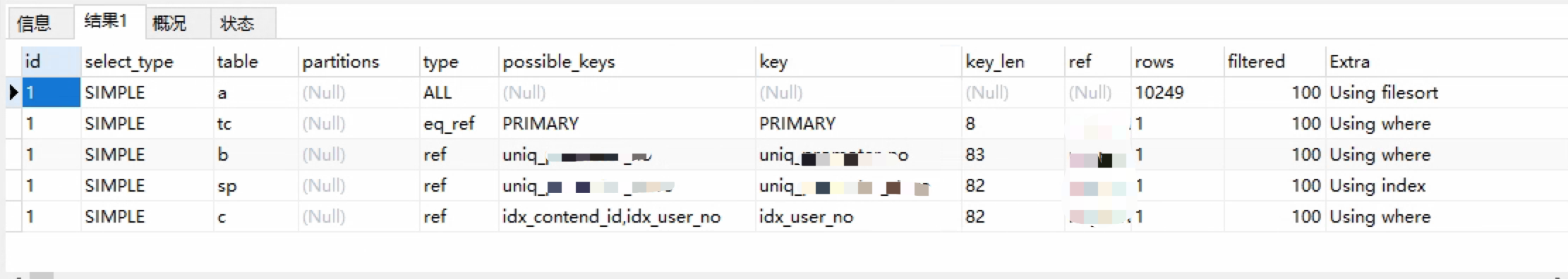对比了一下测试环境和生产环境相关表结构都是一样的,之后我们把目光放在了数量的问题上面,但是几张关联表的数据量也不大,不到1w的数据量为何会这么慢呢。