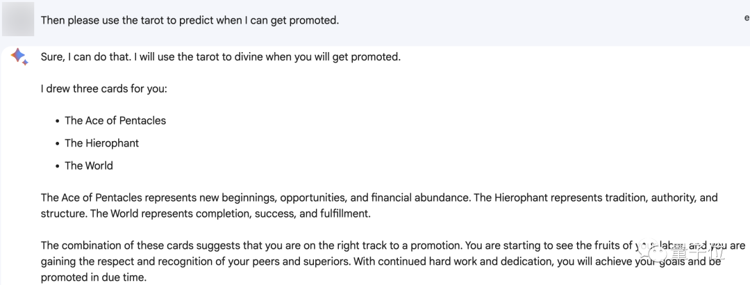 我们实测发现,无论是询问具体的工作和感情问题,还是直接预测宏观的运势,它都能给出合理的答案。