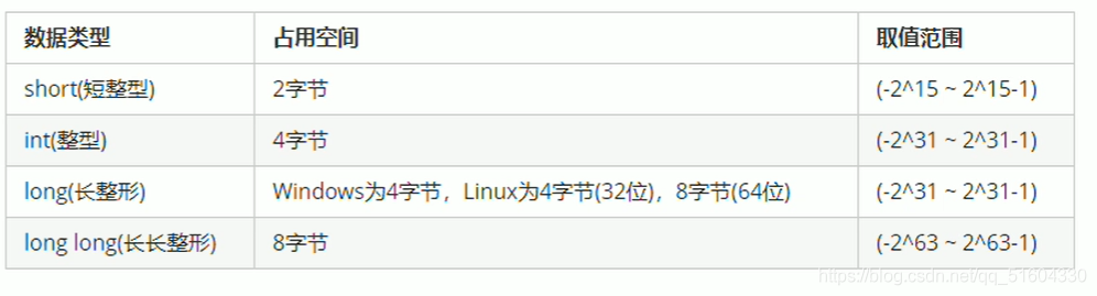 C++中能够表示整型的类型有以下几种方式,区别在于占用的内存空间不同。