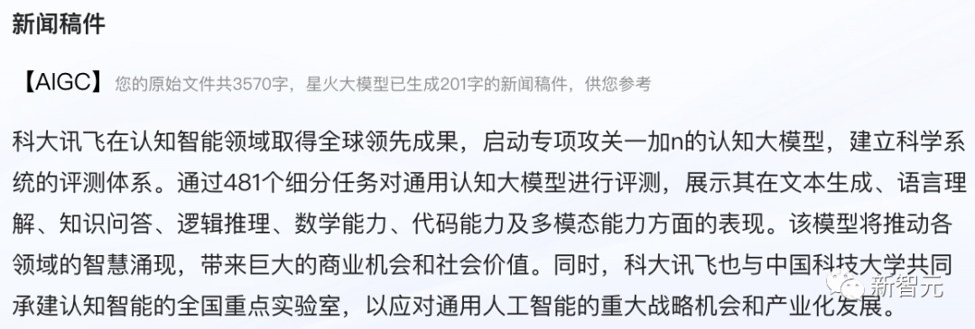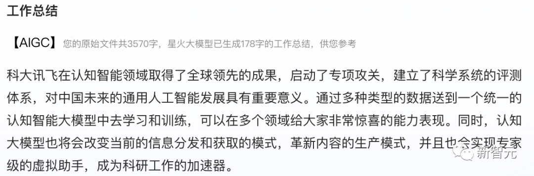 这是就音频,星火给出的「新闻稿件」和「工作总结」。
