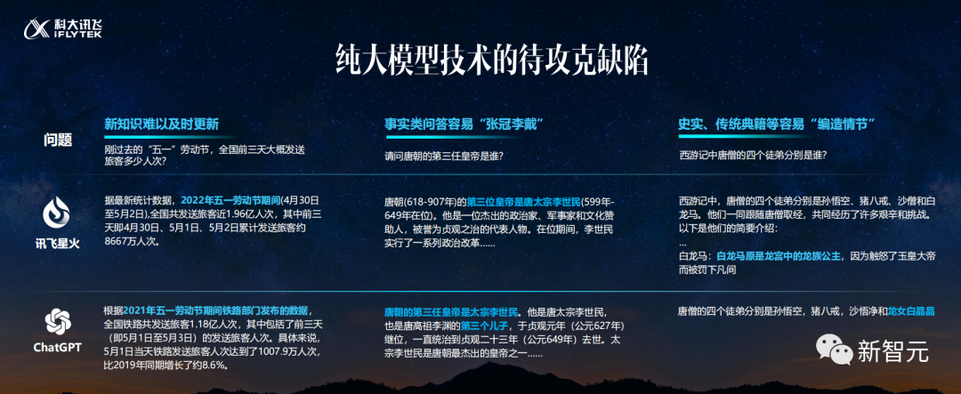 对于讯飞星火认知大模型,科大讯飞董事长刘庆峰直言,目前大模型依然存在不少待攻克的技术缺陷。