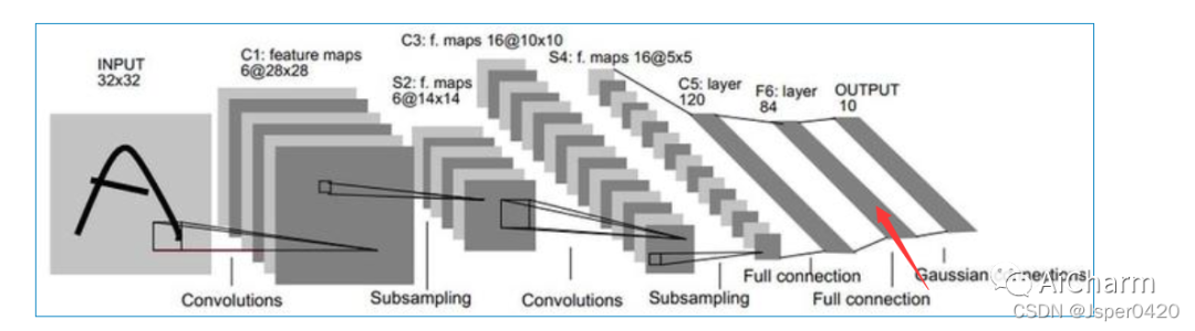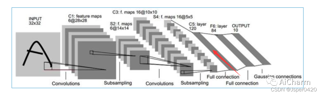 卷积核数目为120个,大小为5×5,由于第四层输出的特征图大小为5×5,因此第五层也可以看成全连接层,输出为120个大小为1×1的特征图。
