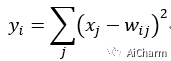 这公式是什么意思呢? 首先我们应该明白径向基神经网络:它基于距离进行衡量两个数据的相近程度的,RBF网最显著的特点是隐节点采用输人模式与中心向量的距离(如欧氏距离)作为函数的自变量,并使用径向基函数(如函数)作为激活函数。径向基函数关于N维空间的一个中心点具有径向对称性,而且神经元的输人离该中心点越远,神经元的激活程度就越低。上式是基于欧几里得距离,怎么理解那个式子呢?就是说F6层为84个输入用表示X_i,输出有10个用表示y_i,而权值W_ji使用,上式说明所有输入和权值的距离平方和为依据判断,如果越相近距离越小,输出越小则去哪个,如果我们存储的到W_ji的值为标准的输出.