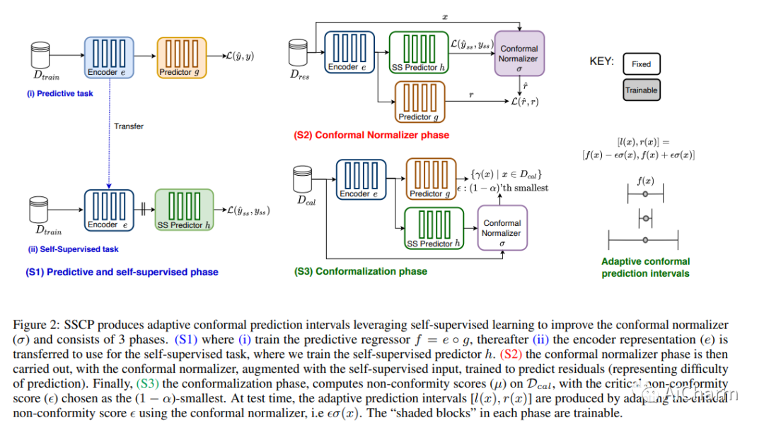 共形预测是一种强大的无分布不确定性量化工具,可通过有限样本保证建立有效的预测区间。为了产生也适应每个实例难度的有效区间,一种常见的方法是在单独的校准集上计算归一化的不合格分数。自我监督学习已在许多领域得到有效利用,以学习下游预测变量的一般表示。然而,除了模型预训练和表示学习之外,自我监督的使用在很大程度上还没有被探索过。在这项工作中,我们研究了自我监督借口任务如何提高共形回归器的质量,特别是通过提高共形区间的适应性。我们在现有预测模型的基础上训练一个具有自我监督借口任务的辅助模型,并将自我监督错误作为附加特征来估计不合格分数。我们使用关于保形预测区间的效率(宽度)、不足和超额的合成和真实数据,凭经验证明了附加信息的好处。