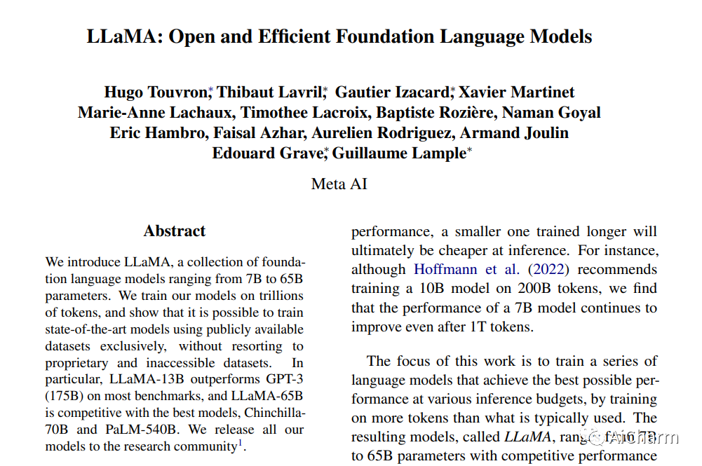 文章链接:https://research.facebook.com/publications/llama-open-and-efficient-foundation-language-models/