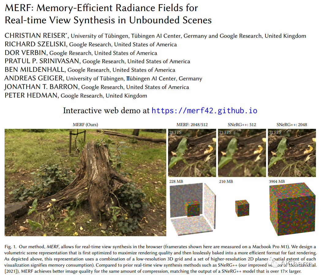 标题:MERF:用于无界场景中实时视图合成的内存高效辐射场