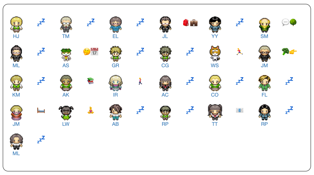 为了实现这一点,该研究采用了一种语言模型,可以将动作转换为一组表情符号,这些表情符号出现在每个智能体化身上方的对话框中。例如,「Isabella Rodriguez 正在写日记」显示为