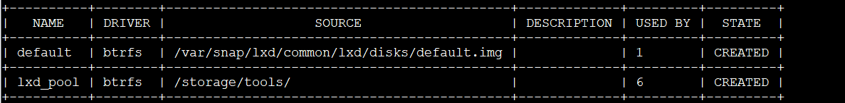 note: default 为默认的存储地址,lxd_pool 是我创建的存储地址